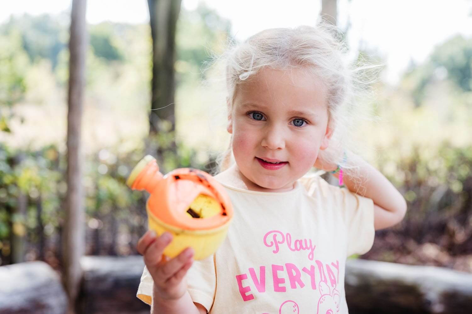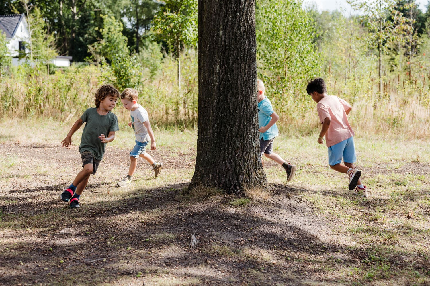 Hoewel het binnen prachtig is, is het buiten misschien nog wel het allermooiste. We zijn hier ten slotte midden in een park! Dat daagt uit om op avontuur te gaan. Lekker struinen, met zand spelen, modder maken, in bomen klimmen en dwalen door alle kruip-door-sluip-door-paadjes. Meer dan af en toe een ‘frisse neus halen’ dus: we spelen veel buiten. Niet alleen als de zon schijnt, maar ook als de wind om je oren blaast. Niet alleen als het boven de vijftien graden is, maar ook als de kikkers een winterslaap houden. Slecht weer bestaat niet, slechte kleding wel!